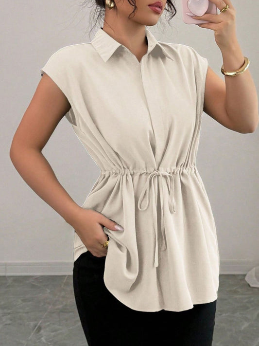 Drawstring Waist Cap Sleeve Shirt